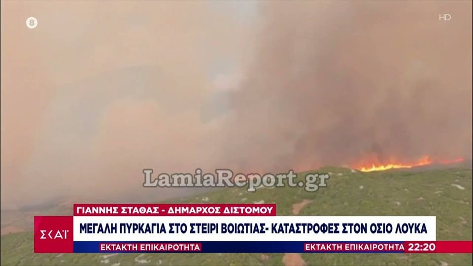 Δήμαρχος Διστόμου: Ανεξέλεγκτη η φωτιά στη Βοιωτία, στα 12χλμ. το μέτωπο – Σε επιφυλακή οικισμοί (VIDEO)