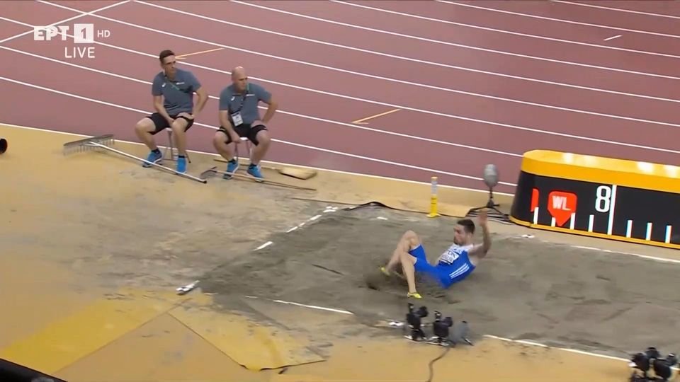 Ο Έλληνας αθλητής έκανε 8.50 στο πρώτο του άλμα, επίδοση που συνιστά την καλύτερη φετινή του επίδοση, και αμέσως μετά γύρισε προς τον κόσμο κάνοντας την χαρακτηριστική κίνηση "calma, calma".