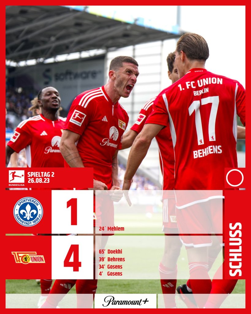 «Απόλυτη» Ουνιόν! Οι «πρωτευουσιάνοι» αν και έπαιζαν από το 22’ με παίχτη λιγότερο επικράτησαν 4-1 της Ντάρμσταντ εκτός έδρας και έκαναν το 2Χ2.