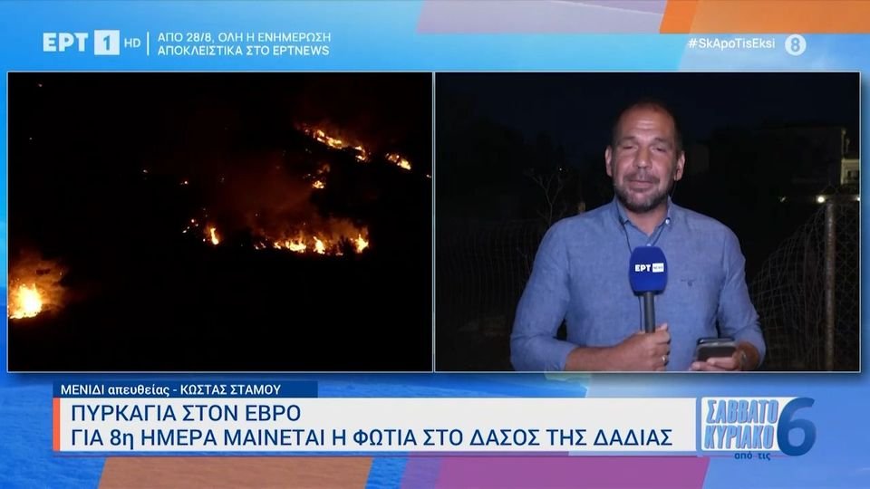 Η φωτιά στο δάσος της Δαδιάς βρίσκεται σε εξέλιξη για 8η ημέρα, με τον καιρό αντί να χειροτερεύει την κατάσταση λόγω του φαινομένου της "ξηρής καταιγίδας".