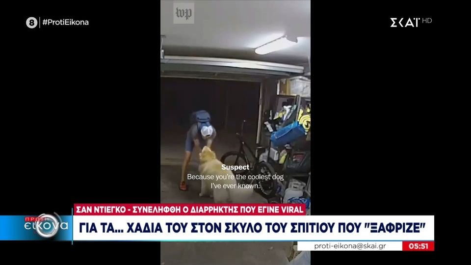Σαν Ντιέγκο: Διαρρήκτης έγινε viral για τα... χάδια του στον σκύλο του σπιτιού που «ξάφριζε»! (VIDEO)