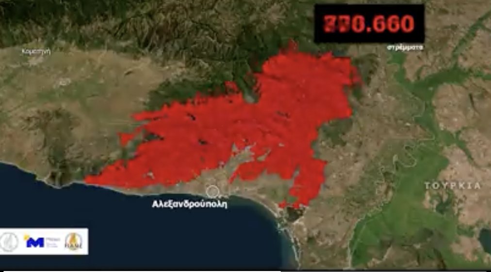 Σημειώνεται ότι σύμφωνα με την ανάλυση της υπηρεσία χαρτογράφησης καμένων εκτάσεων του Εθνικού Παρατηρητηρίου Δασικών Πυρκαγιών (ΕΠαΔαΠ), η οποία υλοποιείται από το εργαστήριο Δασικής Διαχειριστικής και Τηλεπισκόπησης του Τμήματος Δασολογίας και Φυσικού Περιβάλλοντος του ΑΠΘ, τα καμένα στον Εβρο μέχρι τις 28/8, με βάση τις πιο πρόσφατες εικόνες υψηλής ανάλυσης του περιβαλλοντικού δορυφόρου Sentinel-2 ανέρχονται σε 826.000 στρέμματα.