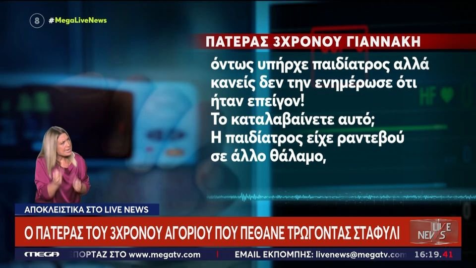 «Δεν είμαι καθόλου καλά αλλά δεν μπορώ να ακούω ό,τι να 'ναι. Ο πρόεδρος του Κέντρου Υγείας λέει ότι το παιδί μου έφτασε στο κέντρο στις 9:02. Εγώ έχω βίντεο από κάμερες του μαγαζιού μου που το παιδί μου είναι ζωντανό 9:01. Η αλήθεια είναι πως όταν φτάσαμε στο Κέντρο Υγείας, όντως υπήρχε παιδίατρος αλλά κανείς δεν ενημέρωσε ότι ήταν επείγον! Το καταλαβαίνετε αυτό; Η παιδίατρος είχε ραντεβού σε άλλο θάλαμο, το ολοκλήρωσε και μετά ήρθε στο παιδί μου» τόνισε ο πατέρας του παιδιού μιλώντας στο Mega.