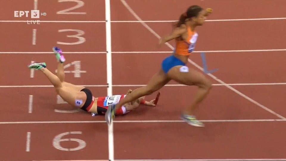 4x100: Σοκ με την Ελβετίδα να σωριάζεται πάνω στη γραμμή τερματισμού! (VIDEO)