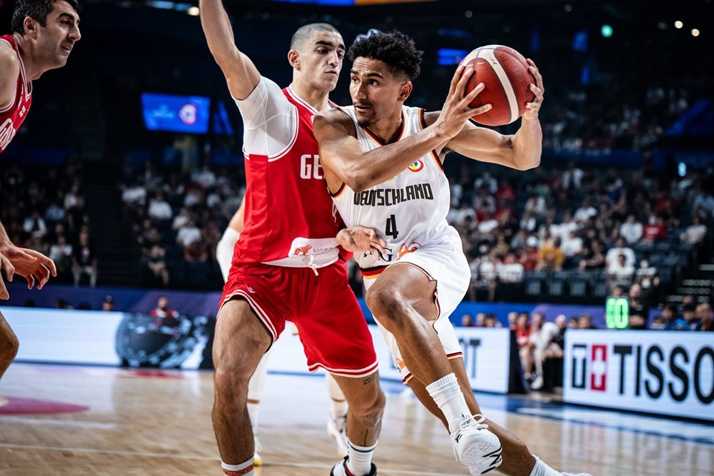 Σε εξαιρετική κατάσταση είναι η Γερμανία, όπως πιστοποίησε για άλλη μία φορά, με τη σπουδαία εμφάνισή της, στην πρεμιέρα των «16» του Παγκοσμίου Κυπέλλου, όπου πήρε άνετη νίκη επί της Γεωργίας με 100-73, σε ματς που έγινε στην Οκινάβα της Ιαπωνίας για τον Κ’ Όμιλο. Έτσι, τα «πάντσερ» είναι σταθερά αήττητα, έχοντας το απόλυτο σε νίκες, με ρεκόρ 4-0, ενώ από την άλλη μεριά, η ομάδα του Ηλία Ζούρου έπεσε στο 2-2. Ο Μαόντο Λο ήταν ο πρώτος σκόρερ για τους νικητές, έχοντας 18 πόντους και 5 ασίστ, ενώ από την άλλη μεριά, κορυφαίος ήταν ο Αλεξάντερ Μαμουκελασβίλι με 19 πόντους.