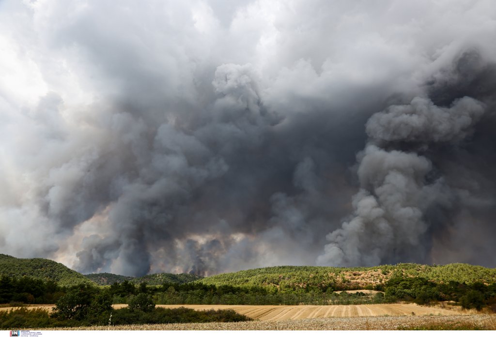 Ο καπνός στην περιοχή είναι αρκετός με τον αέρα να τον σπρώχνει προς οικισμούς.