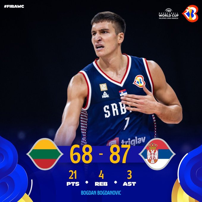 Στην τετράδα του Μουντομπάσκετ 2023 βρίσκεται η Σερβία, καθώς, στον προημιτελικό συνέτριψε 87-68 τη Λιθουανία.