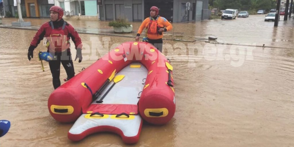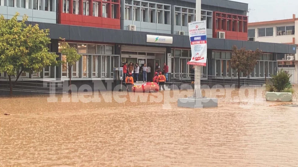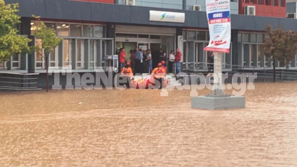 Ο απεγκλωβισμός εργαζομένων και πολιτών που βρίσκονταν στο κτήριο του ΔΕΔΔΗΕ και της ΔΕΗ στην οδό Λαρίσης έγινε με βάρκες, προκειμένου να απομακρυνθούν με ασφάλεια και να επιστρέψουν στα σπίτια τους.
