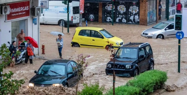 Η κατάσταση έχει λίγο καλυτερέψει ωστόσο εξακολουθεί να βρέχει έντονα και κανείς δεν μπορεί να φύγει με απόλυτη ασφάλεια.