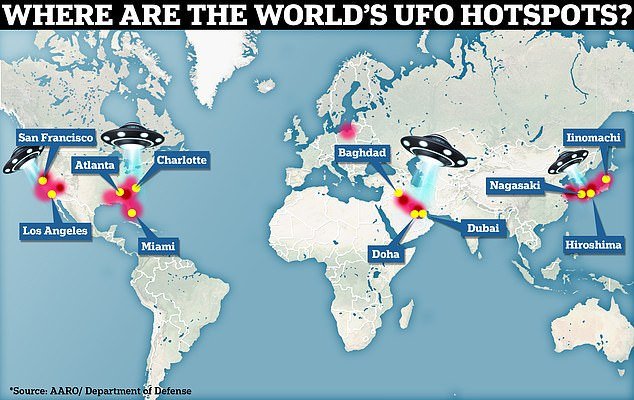 Σύμφωνα λοιπόν με τον παγκόσμιο χάρτη εμφάνισης UFO, φαίνεται ότι τα αγαπημένα μέρη των εξωγήινων για σύντομες επισκέψεις είναι στις ανατολικές και δυτικές ακτές των ΗΠΑ, τη Μέση Ανατολή και την Ιαπωνία.