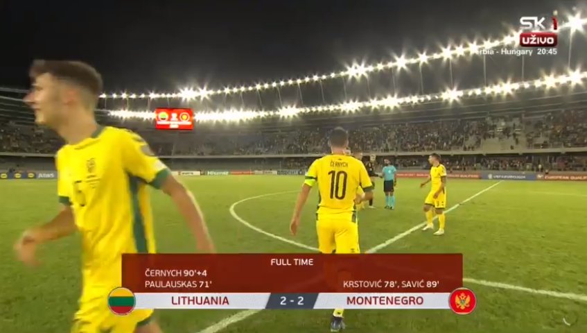 Μάλιστα στο 90ο λεπτό το Μαυροβούνιο έκαναν την ανατροπή, με κοντινό πλασέ του Σάβιτς(1-2), ωστόσο οι Λιθουανοί δεν είχαν πει την τελευταία τους λέξη και στο 90+4’ ο Τσέρνιτς με ένα φοβερό φαλτσαριστό σουτ από τα 20 μέτρα διαμόρφωσε το τελικό 2-2.