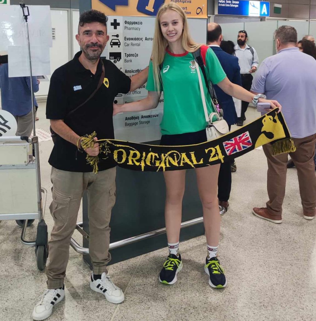 Στην Αθήνα βρίσκεται από το μεσημέρι της Παρασκευής η Μέρελιν Νικόλοβα. Το νέο μας μεταγραφικό απόκτημα της γυναικεία ομάδα βόλεϊ της ΑΕΚ υποδέχτηκε ο τιμ μάνατζερ του τμήματος, Νίκος Παναγιωτίδης.
