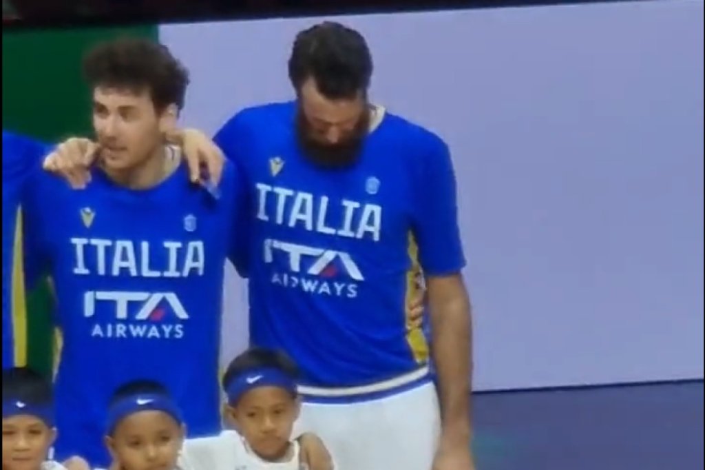 Η Ιταλία αντιμετωπίζει τη Σλοβενία, με στόχο την έβδομη θέση, στο Μουντομπάσκετ 2023, και, κατά την ανάκρουση των εθνικών ύμνων, η εικόνα του Λουίτζι Ντατόμε συγκλόνισε.