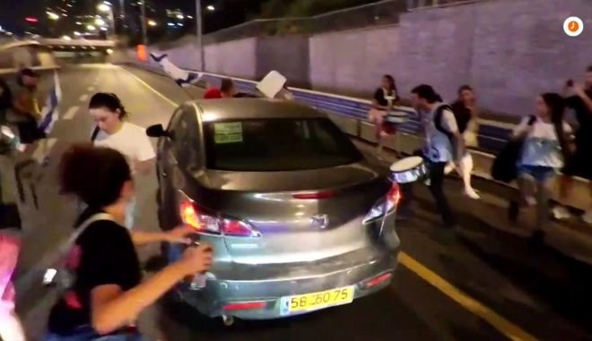 Ένα αυτοκίνητο έπεσε πάνω σε πλήθος διαδηλωτών που είχαν αποκλείσει κεντρικό δρόμο στο Τελ Αβίβ στο τέλος μιας μαζικής διαδήλωσης κατά της δικαστικής αναθεώρησης της κυβέρνησης το Σάββατο (9/9).