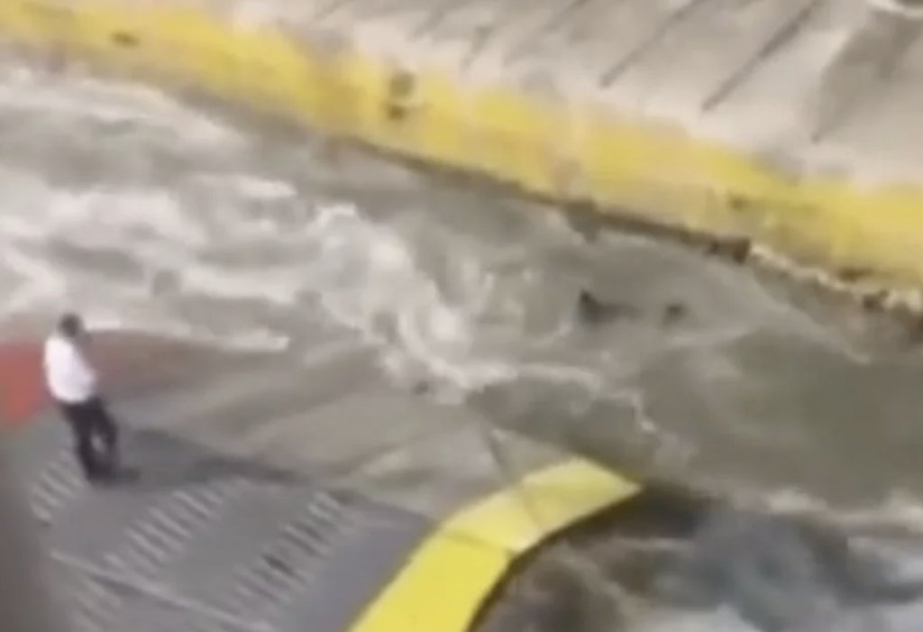 Την ώρα που, μόλις είχαμε πάρει άδεια κανονικά, αμολήσαμε, σηκώσαμε τον καταπέλτη από το έδαφος, ξαφνικά είδα έναν επιβάτη ο οποίος προσπάθησε να μπει μέσα στο πλοίο και γλίστρησε.