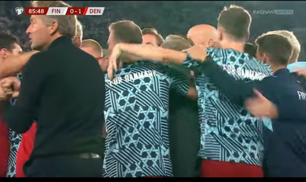 Στο γήπεδο βρέθηκαν και Δανοί φίλαθλοι, οι οποίοι αποθέωσαν τους ποδοσφαιριστές μετά τη λήξη. Οι διεθνείς πήγαν προς το μέρος τους, για να τους ευχαριστήσουν για τη στήριξη, και ακολούθησε μια πορωτική ομιλία από τον Ράσμους Χόιλουντ.