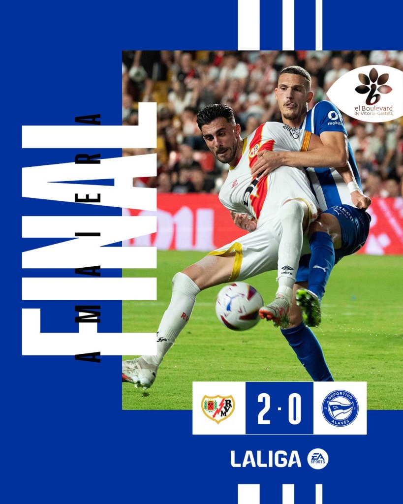 Την νίκη με 2-0 πανηγύρισε η Ράγιο Βαγιεκάνο επί της Αλαβές για την 5η αγωνιστική της La Liga και ανέβηκε στους εννέα βαθμούς.