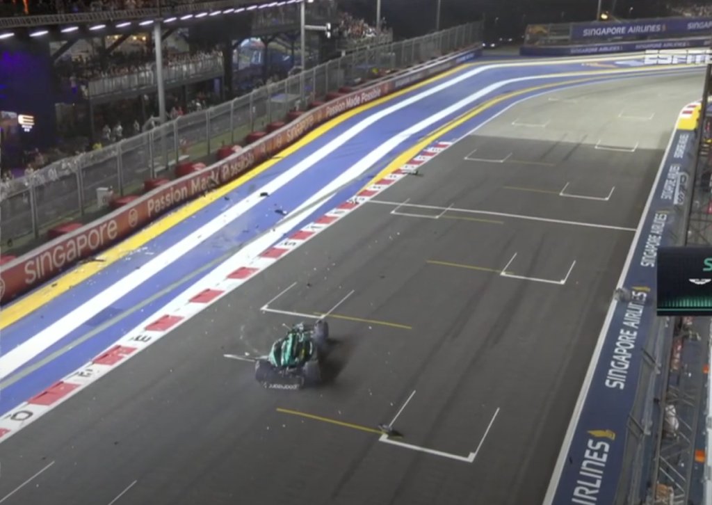 Ένα τρομακτικό... τετ-α-τετ με τις μπαριέρες είχε ο Λανς Στρολ στο Q1 των κατατακτήριων δοκιμών στην Σιγκαπούρη, ευτυχώς χωρίς να πάθει απολύτως τίποτα.