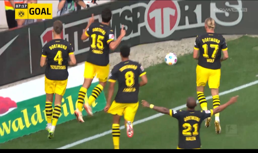 Μόλις στο 11ο λεπτό, ο Χούμελς, με καρφωτή κεφαλιά, έβαλε μπροστά στο σκορ τη Ντόρτμουντ, με τη Φράιμπουργκ να φέρνει τούμπα το ματς, στις καθυστερήσεις του ημιχρόνου. Ο Λούκας Χόλερ με κεφαλιά ισοφάρισε και, με τον ίδιο τρόπο, ο Νίκολας Χόφλερ έκανε το 2-1.