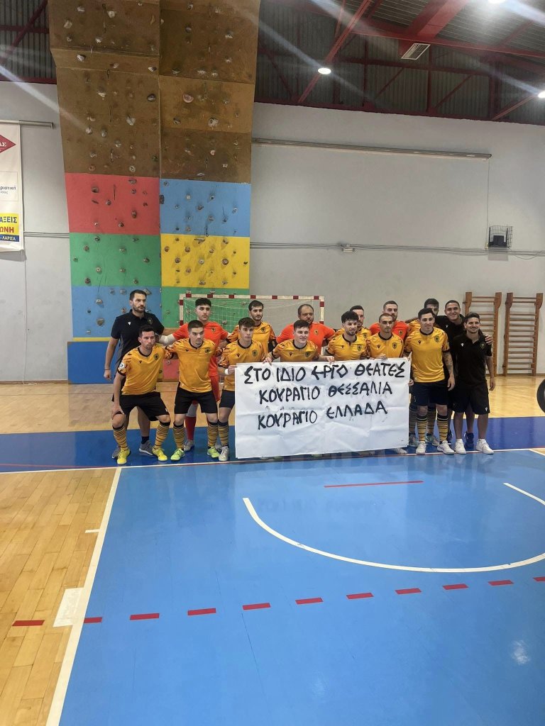 Πριν την έναρξη του αγώνα Futsal μεταξύ της ΑΕΚ και της ΑΕΛ για την πρεμιέρα του Πρωταθλήματος οι αθλητές της Ένωσης έστειλαν το δικό τους μήνυμα συμπαράστασης στους πληγέντες των φονικών πλημμυρών. Συγκεκριμένα, κράτησαν ένα πανό το οποίο έγραφε: «Στο ίδιο έργο θεατές. Κουράγιο Θεσσαλία. Κουράγιο Ελλάδα».