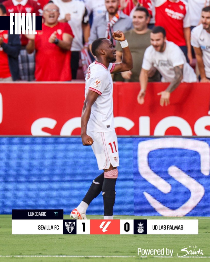 Την πρώτη της νίκη στην φετινή La Liga πανηγύρισε η Σεβίλλη, που κέρδισε δύσκολα με 1-0 την Λας Πάλμας. «Χρυσός» σκόρερ για τους Ανδαλουσιανούς ο Λουκεμπάκιο, παραμένουν δίχως νίκη οι φιλοξενούμενοι.