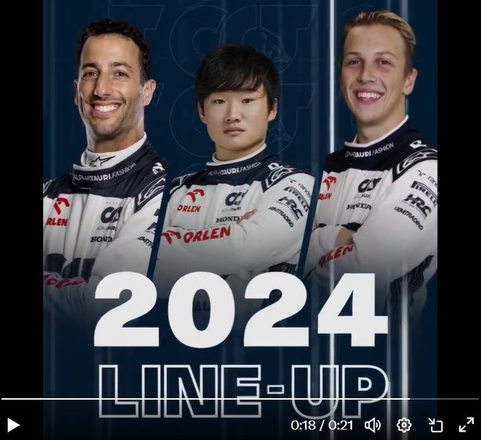 Η Alpha Tauri ανακοίνωσε επίσημα ότι και την επόμενη σεζόν στη Formula 1, δηλαδή για το 2024, θα έχει στα κόκπιτ της, τους δύο τωρινούς πιλότους της. Κι αυτό διότι τόσο ο Αυστραλός, Ντάνιελ Ρικιάρντο, όσο και ο Ιάπωνας, Γιούκι Τσουνόντα, έβαλαν την υπογραφή τους, σε νέα συμβόλαια, για έναν ακόμα χρόνο με την ιταλική ομάδα. Το ίδιο συνέβη και με τον αναπληρωματικό οδηγό, τον Λίαμ Λόσον. Θυμίζουμε ότι ο Ρικιάρντο ήρθε μεσούσης της φετινής σεζόν, παίρνοντας τη θέση του Νικ Ντε Βρις. Ο Τσουνόντα τόνισε από την πλευρά του: «Ανυπομονώ να συνεχίσω να παλεύω για την ομάδα και για την συνεργασία μου με τον Ρικιάρντο. Ευχαριστώ την Red Bull (σ.σ. η Alpha Tauri είναι η θυγατρική ομάδα της Red Bull) και την Honda για την εμπιστοσύνη και την πίστη που δείχνουν στο πρόσωπό μου».