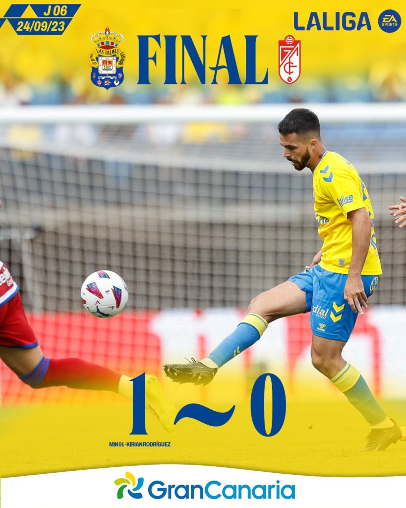 Σπουδαίο τρίποντο για την Λας Πάλμας. Η ομάδα από τα Κανάρια Νησιά, παρότι έπαιζε με 10 ποδοσφαιριστές από το 58ο λεπτό, κατάφερε με καταπληκτικό τέρμα του Ροντρίγκες στο 90+2’ να «λυγίσει» με 1-0 την Γρανάδα και να πανηγυρίσει την πρώτη της νίκη στο φετινό πρωτάθλημα.