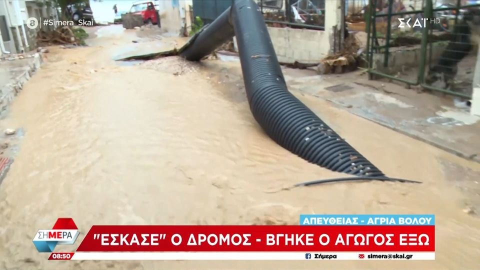 Οι εικόνες σοκάρουν και μάλιστα μέχρι και ο δρόμος «έσκασε» στην Αγριά του Βόλου και βγήκε ο αγωγός έξω.
