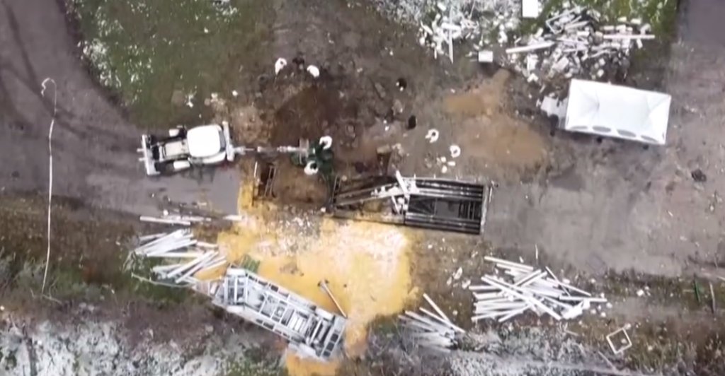 Images aériennes exclusives de l'entrepôt de céréales à Przewodow, en Pologne, deux jours après qu'un missile soit tombé sur le site, causant la mort de deux personnes. pic.twitter.com/DQtSoYzcy3