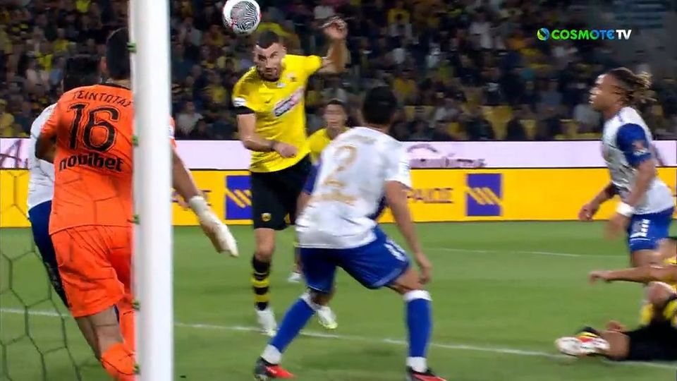 Με πάσα το κορνερ κοντινή, ωραία συνδιάστηκαν οι παίκτες της ΑΕΚ, γύρισμα του Σιντιμπέ κεφαλιά του Μήτογλου πάνω στη γραμμή έδιωξε ο Ασεβέδο με το κεφάλι