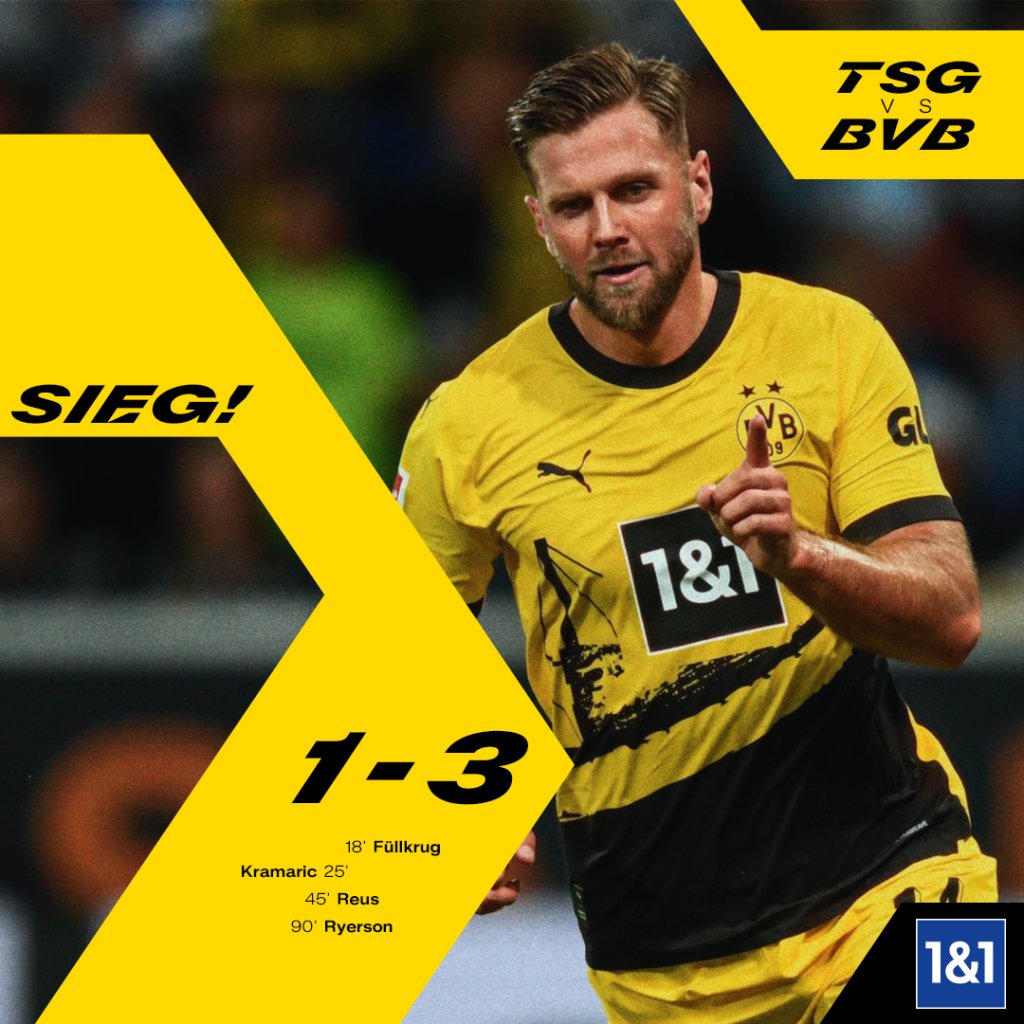 Η Ντόρτμουντ μπορεί να αγωνίστηκε από το 71’ με παίχτη λιγότερο λόγω αποβολής του Μπενσεμπαϊνί, ωστόσο κατάφερε να φύγει με την νίκη(3-1) από την έδρα της Χόφενχαϊμ και να ανέβει έστω και προσωρινά στην 1η θέση της βαθμολογίας με 14 βαθμούς.