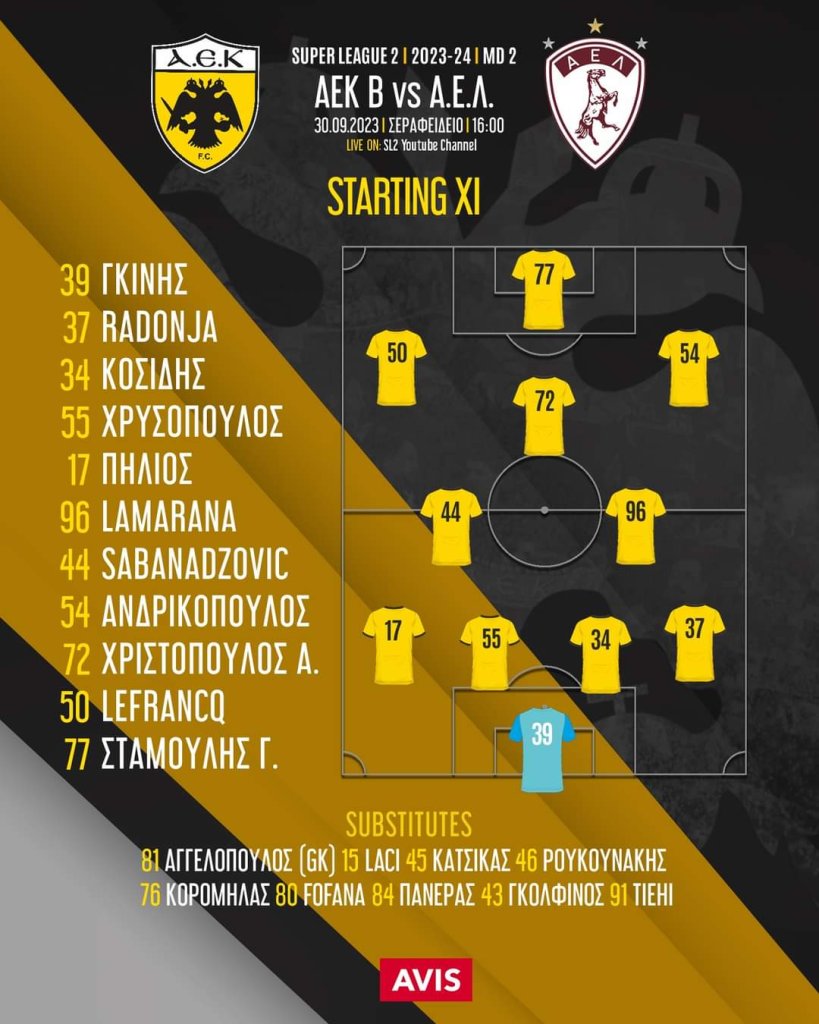Στις 16:00 η ΑΕΚ Β' υποδέχεται την Λάρισα για την 2η αγωνιστική του πρωταθλήματος της Super League 2.