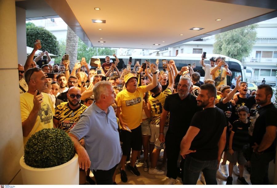 Εκατοντάδες Ενωσίτες έδωσαν το παρών από νωρίς στο αεροδρόμιο για να αποθεώσουν Αλμέιδα και ποδοσφαιριστές ωστόσο η... υποδοχή τελικά μεταφέρθηκε στο ξενοδοχείο. Ο λόγος είναι πως το πούλμαν βγήκε από άλλη έξοδο στο αεροδρόμιο προφανώς με εντολή της ΕΛ.ΑΣ. και έτσι ο λαός της ΑΕΚ πήγε στο ξενοδοχείο που κατέλυσε η αποστολή όπου επικράτησε πανικός.