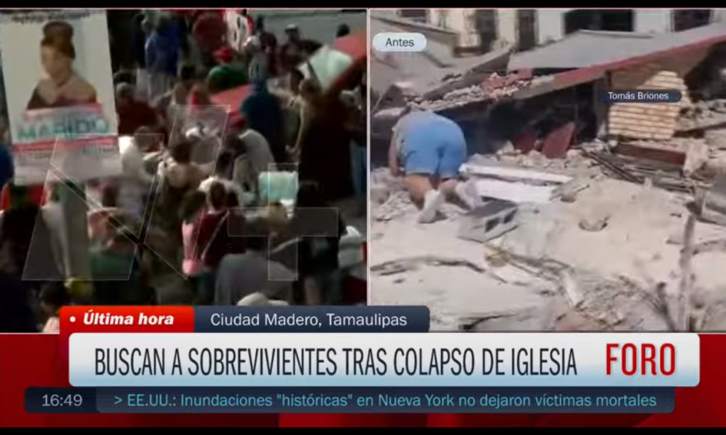 Εικόνες που κατέγραψε η τηλεοπτική υπηρεσία της εφημερίδας Milenio εικονίζουν δεκάδες ανθρώπους καθώς προσπαθούν να στηρίξουν μέρος της εκκλησίας που κατέρρευσε χρησιμοποιώντας στύλους, ενώ άλλοι προσπαθούν να ανοίξουν δρόμο στα συντρίμμια για να βρουν επιζώντες.