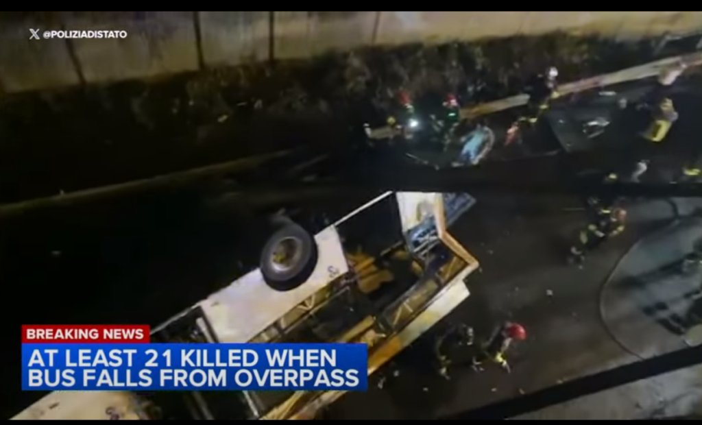 Συγκλονίζουν οι λεπτομέρειες από το φονικό τροχαίο στη Βενετία, όταν το λεωφορείο στο οποίο επέβαινα 40 περίπου άτομα έπεσε από γέφυρα, με αποτέλεσμα 21 άνθρωποι να χάσουν τη ζωή τους και άλλοι 15 να τραυματιστούν.