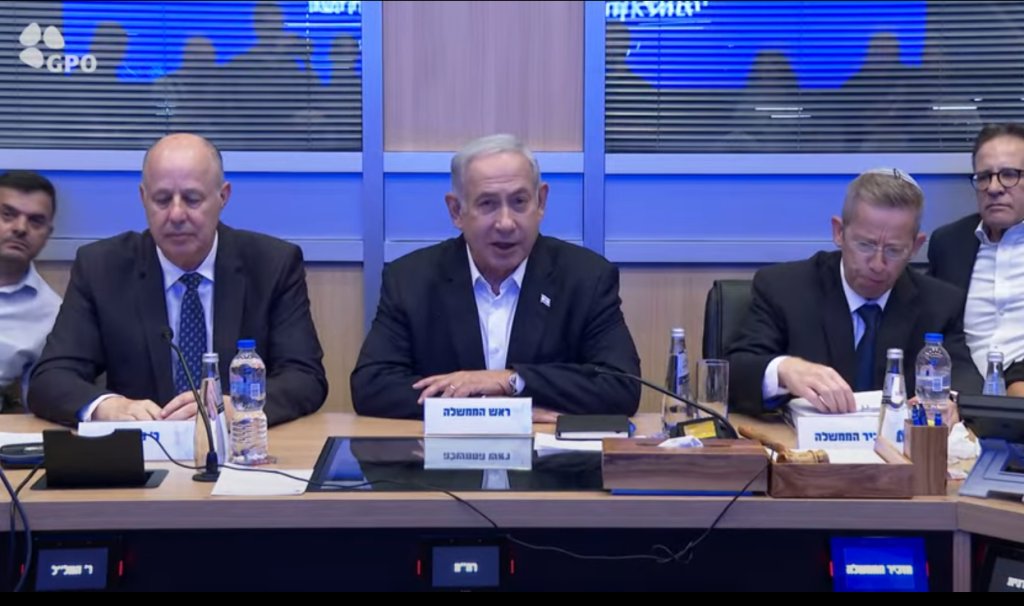 «Από σήμερα το πρωί, το κράτος του Ισραήλ βρίσκεται σε πόλεμο. Ο πρώτος μας στόχος είναι πρώτα απ' όλα να καθαρίσουμε την περιοχή από τις εχθρικές δυνάμεις που έχουν διεισδύσει και να αποκαταστήσουμε την ασφάλεια και την ειρήνη στους οικισμούς που δέχθηκαν επίθεση» είχε στους συνομιλητές του ο Ισραηλινός πρωθυπουργός.