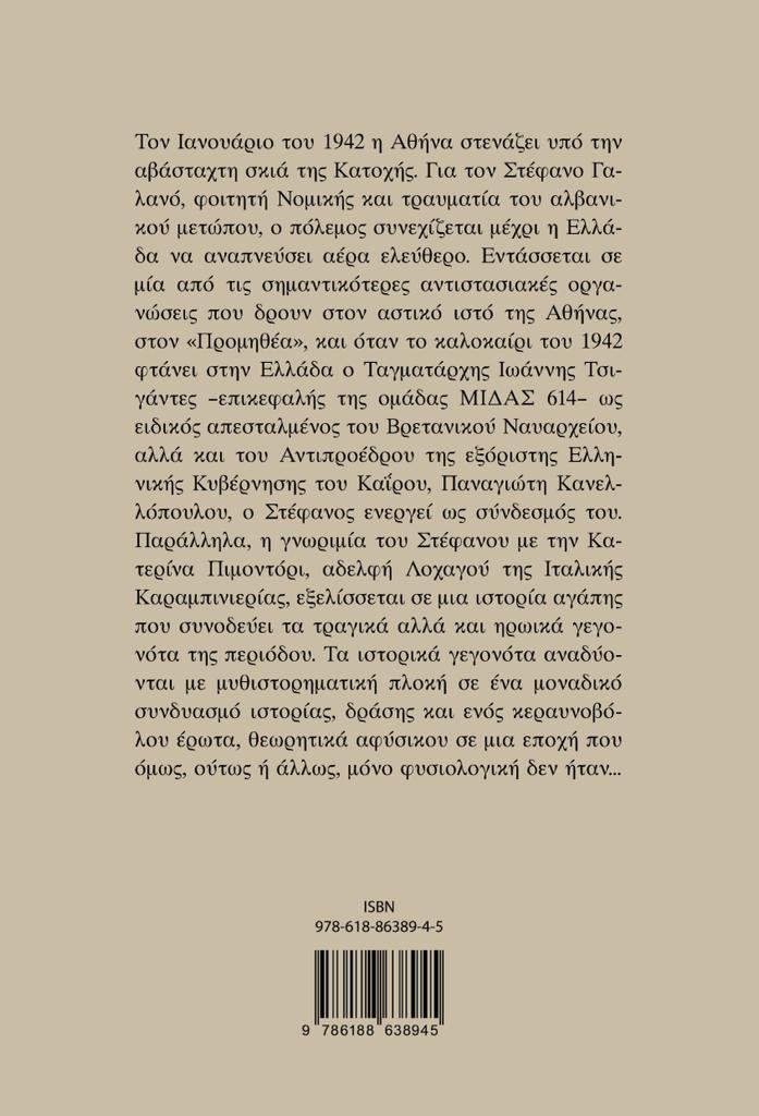 Η ιστορία ξεκινά τον Ιανουάριο του 1942 με την περιγραφή της θλιβερής κατάστασης στην Αθήνα της Κατοχής. Ο Στέφανος Γαλανός, φοιτητής Νομικής και τραυματίας του αλβανικού μετώπου, εντάσσεται σε μία από τις σημαντικότερες αντιστασιακές οργανώσεις που δρουν στον αστικό ιστό της Αθήνας, στον «Προμηθέα», και στην πορεία ενεργεί ως σύνδεσμος του Τσιγάντε. Παράλληλα γνωρίζεται και με την Κατερίνα Πιμοντόρι, αδελφή Λοχαγού της Ιταλικής Καραμπινιερίας, η οποία συνοδεύει τον αδερφό της στην Ελλάδα ως μεταφράστρια. Καθώς η δράση του «Προμηθέα» μεγαλώνει και ακροβατεί σε τεντωμένο σκοινί, η αγωνία για την τύχη των πρωταγωνιστών κορυφώνεται ταυτόχρονα με τον έρωτα των δύο νέων.