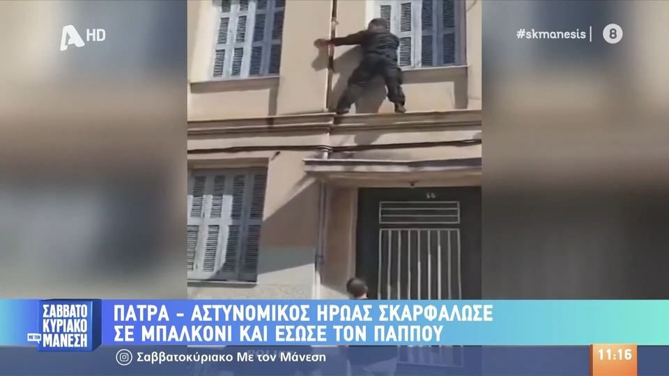 Πάτρα: Αστυνομικός ήρωας σκαρφάλωσε σε μπαλκόνι και έσωσε παππού (VIDEO)