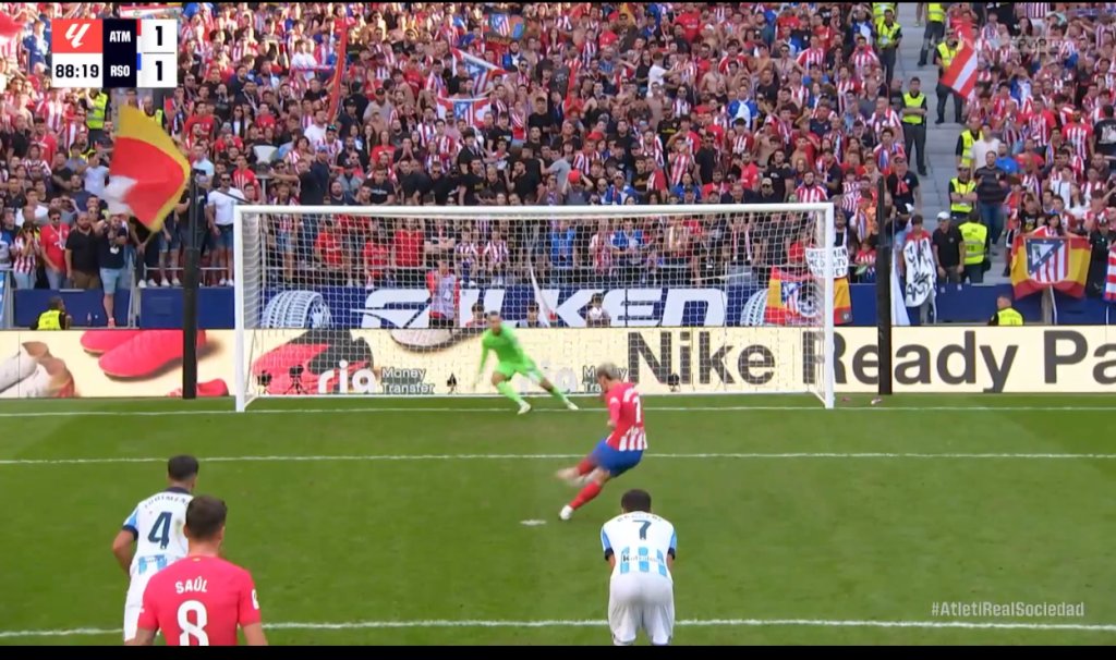 Με πέναλτι που προκάλεσε τις έντονες διαμαρτυρίες των ανθρώπων της Σοσιεδάδ, η Ατλέτικο Μαδρίτης πήρε τη νίκη, στο 89' με σκόρερ τον Αντουάν Γκριεζμάν, για την ένατη αγωνιστική της La Liga.