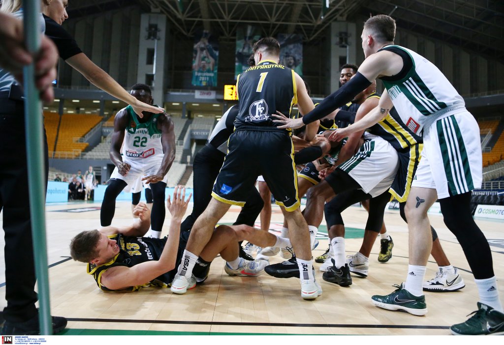 Με αφορμή τη διεκδίκηση της μπάλας οι Κώστας Αντετοκούνμπο και Μάρκο Λούκοβιτς λίγο έλειψε να έρθουν στα χέρια, στα 5:25'' πριν τη λήξη του ματς ανάμεσα στον Παναθηναϊκό και το Μαρούσι. Τόσο ο σέντερ των «πράσινων», όσο και ο φόργουορντ της ομάδας του Σκαραφίγκα, αποβλήθηκαν με ντισκαλιφιέ.
