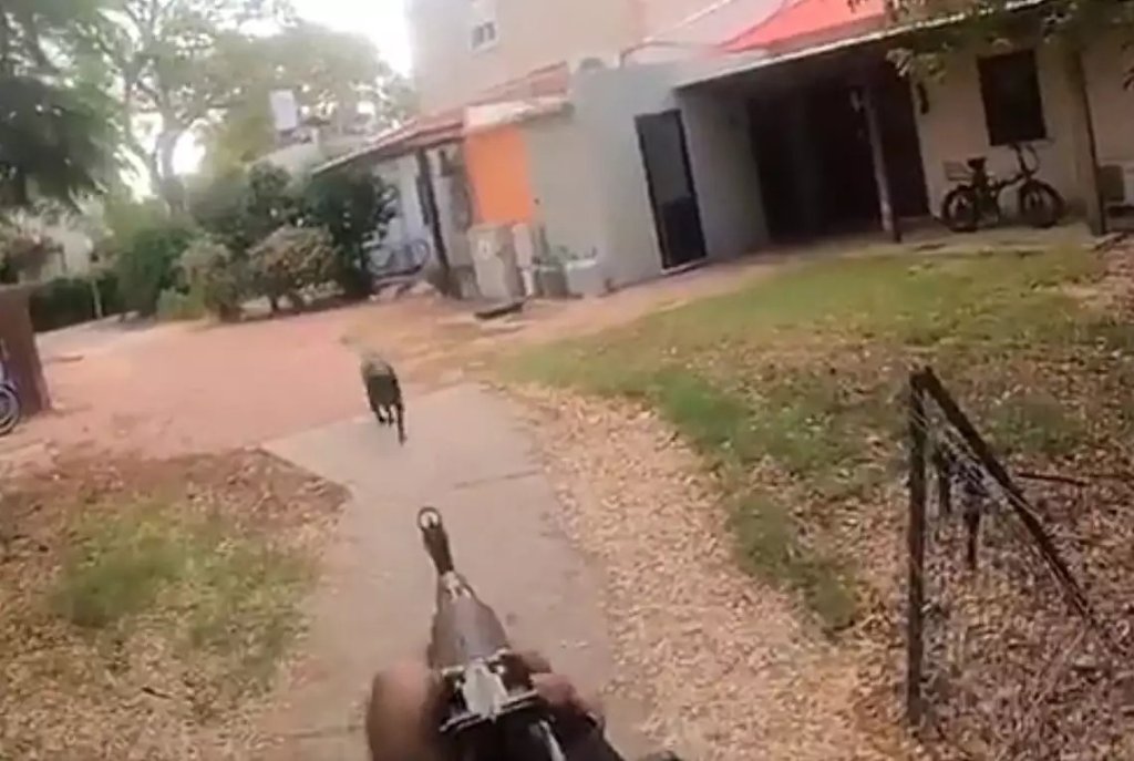 Το βίντεο έχει μαγνητοσκοπηθεί από κάμερα που έχει στο σώμα του ένας ένοπλος άνδρας της Χαμάς και φέρεται να έχει καταγραφεί στο ισραηλινό κιμπούτς Κισουφίμ.
