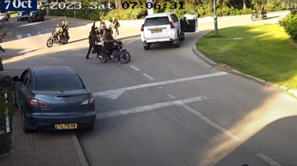 Ένα βίντεο από κάμερες κλειστού κυκλώματος τηλεόρασης ήρθε στο φως στο οποίο καταγράφονται άνδρες της Χαμάς να επιβαίνουν σε μοτοσυκλέτες στο νότιο Ισραήλ λίγη ώρα αφού πέρασαν τα σύνορα με τη Γάζα.