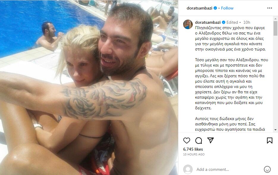 Με μια συγκινητική ανάρτηση, η σύζυγός του, Δώρα Τσαμπάζη, ένιωσε την ανάγκη να ευχαριστήσει όλους όσοι στάθηκαν στο πλευρό της ίδιας και των παιδιών της και τη βοήθησαν σε αυτές τις δύσκολες στιγμές.