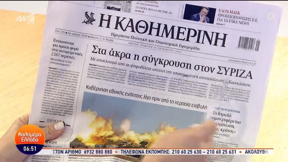 Τα θέματα της ειδησεογραφίας που αναδεικνύονται στον ελληνικό Τύπο, σήμερα 12/10