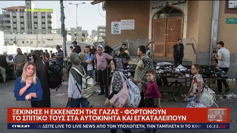 Ξεκίνησε η εκκένωση της Γάζας κατόπιν εντολής που εξέδωσε ο ισραηλινός στρατός σε πάνω από 1 εκατ. άμαχους κατοίκους στο βόρειο τμήμα.