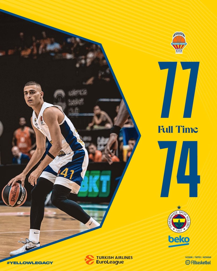 Η Βαλένθια με τρομερό Μπράντον Ντέιβις και καθοριστικό Κρις Τζόουνς έκαμψε την αντίσταση της Φενέρμπαχτσε και έκανε το 2/2 στην φετινή EuroLeague με 77-74.