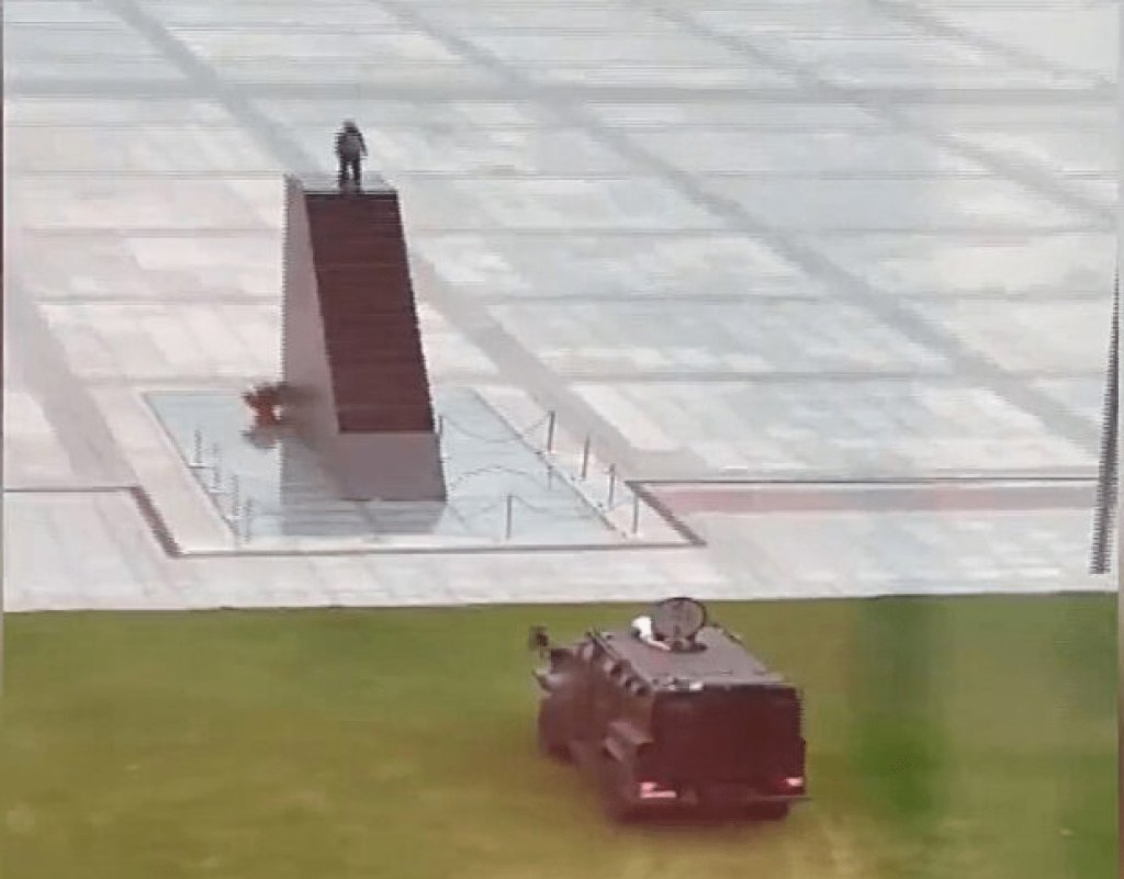Σε βίντεο που αναρτήθηκαν στην πλατφόρμα Χ διακρίνεται ο δράστης, σκαρφαλωμένος στο μνημείο Σμολένσκ, το οποίο είναι αφιερωμένο στα θύματα της αεροπορικής τραγωδίας του 2010, όταν σκοτώθηκαν 96 άνθρωποι μεταξύ των οποίων ο τότε πρόεδρος της Πολωνίας Λεχ Κατσίνσκι και η σύζυγός του Μαρία.
