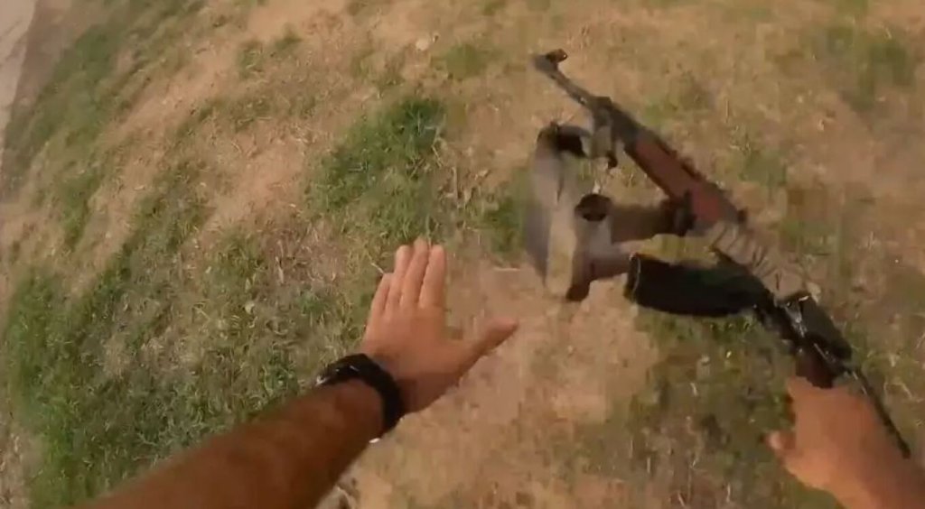 Τελικά ο ένοπλος της Χαμάς που καταγράφει με κάμερα στη στολή του την επίθεση, πέφτει στο έδαφος χτυπημένος από πυρά αγνώστου με τον ίδιο να ουρλιάζει και να φωνάζει «δεν υπάρχει Θεός παρά μόνο ο Αλλάχ».