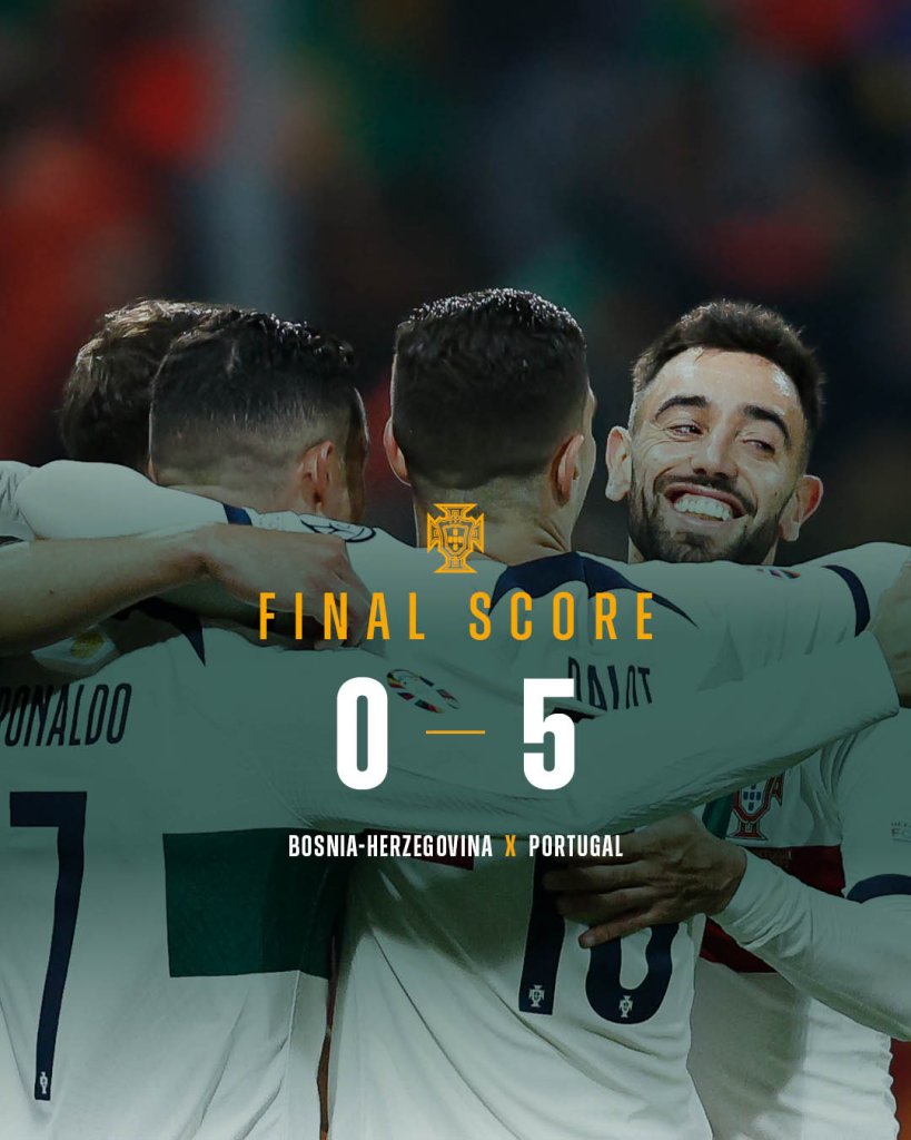 Απίθανη Πορτογαλία! Η παρέα του Κριστιάνο Ρονάλντο(2 γκολ) διέλυσε με 5-0 την Βοσνία εκτός έδρας και έκανε το 8Χ8! Όλα τα γκολ των Πορτογάλων στο πρώτο μέρος, δυσκολεύει πλέον οι πρόκριση για τους γηπεδούχους.