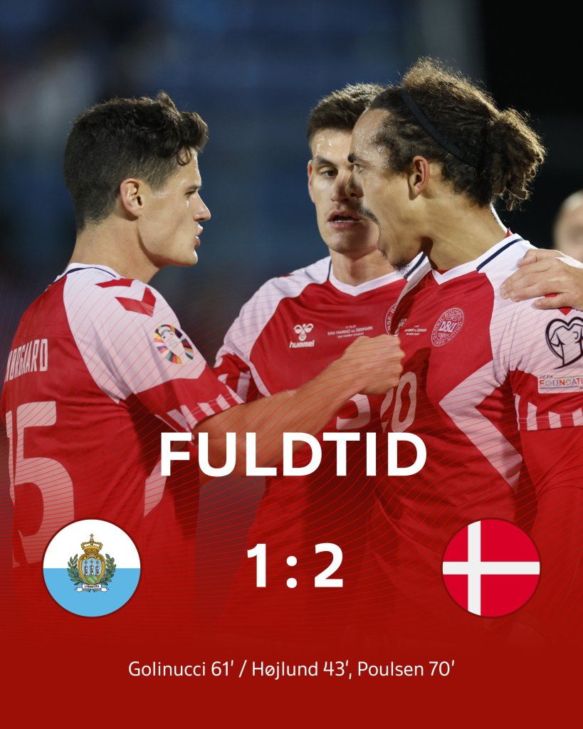 Την νίκη με 2-1 πανηγύρισε η Δανία επί του Σαν Μαρίνο και βρίσκεται πολύ κοντά στην πρόκριση της στο Euro 2024. Ιστορικό γκολ για τους γηπεδούχους, οι οποίοι βρήκαν δίχτυα μετά απο 2 χρόνια!